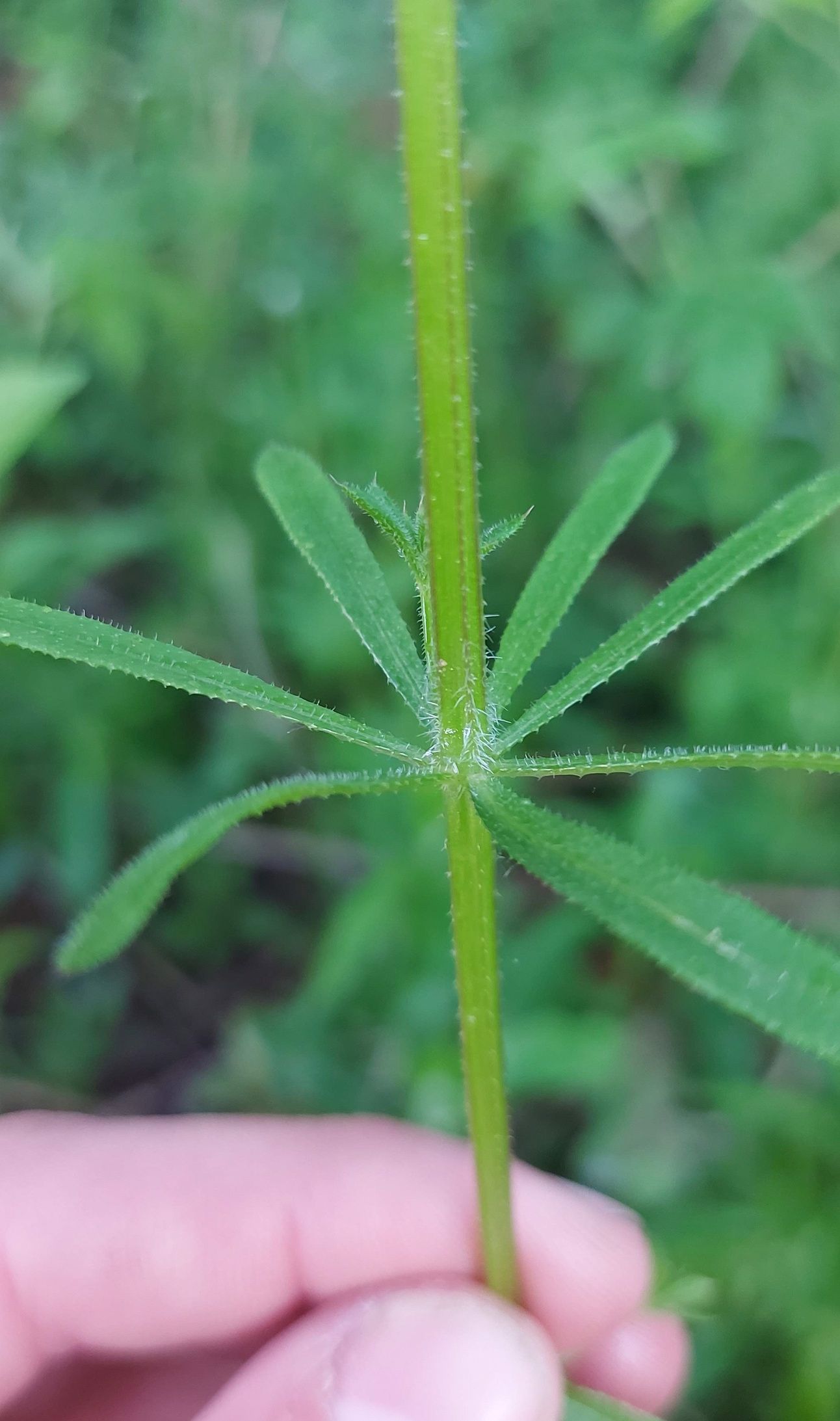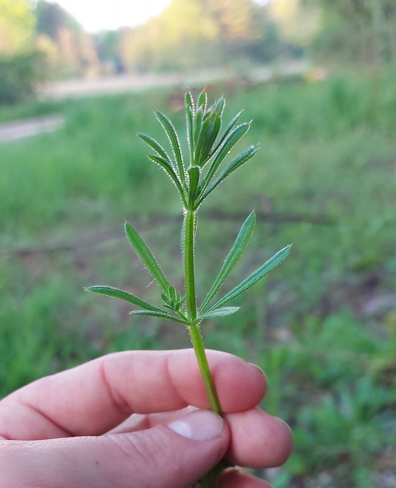 Key Identifiers: Velcro-like leaves and stems that “stick” to you, stemless leaves that are arranged radially (in a whorl) around a square stem with small hairs/prickles, small white flowers in the late spring.