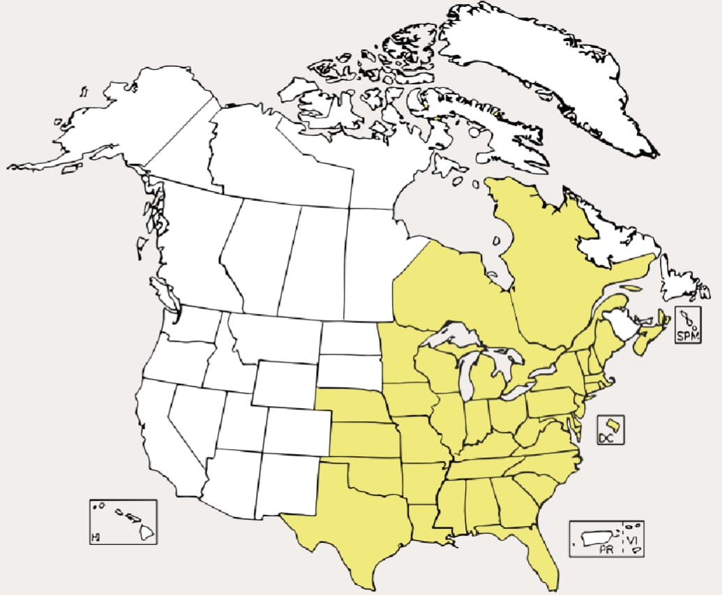 Distribution: Eastern half of the United States and Canada