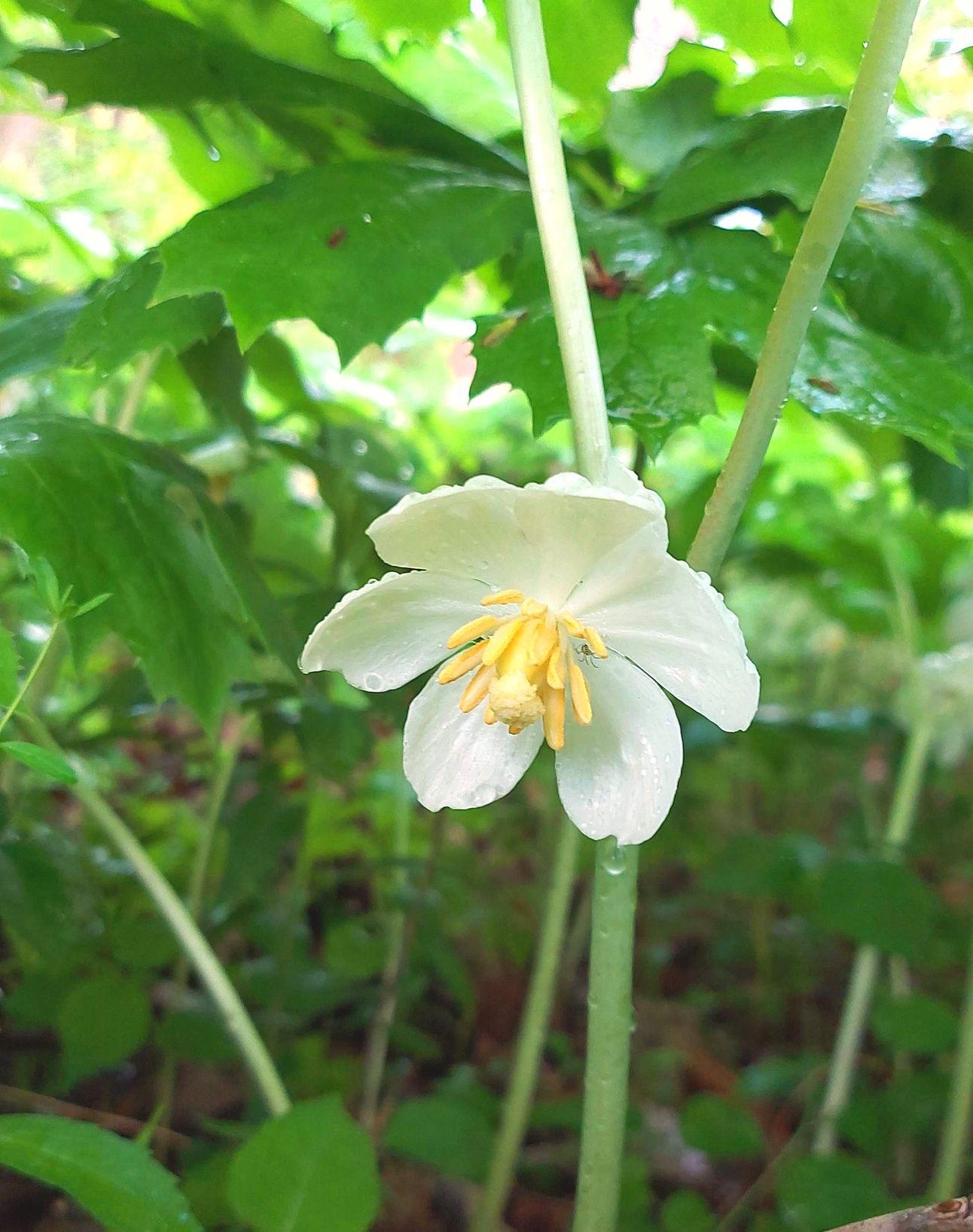 Mayapple flower with “Y” shaped stems
