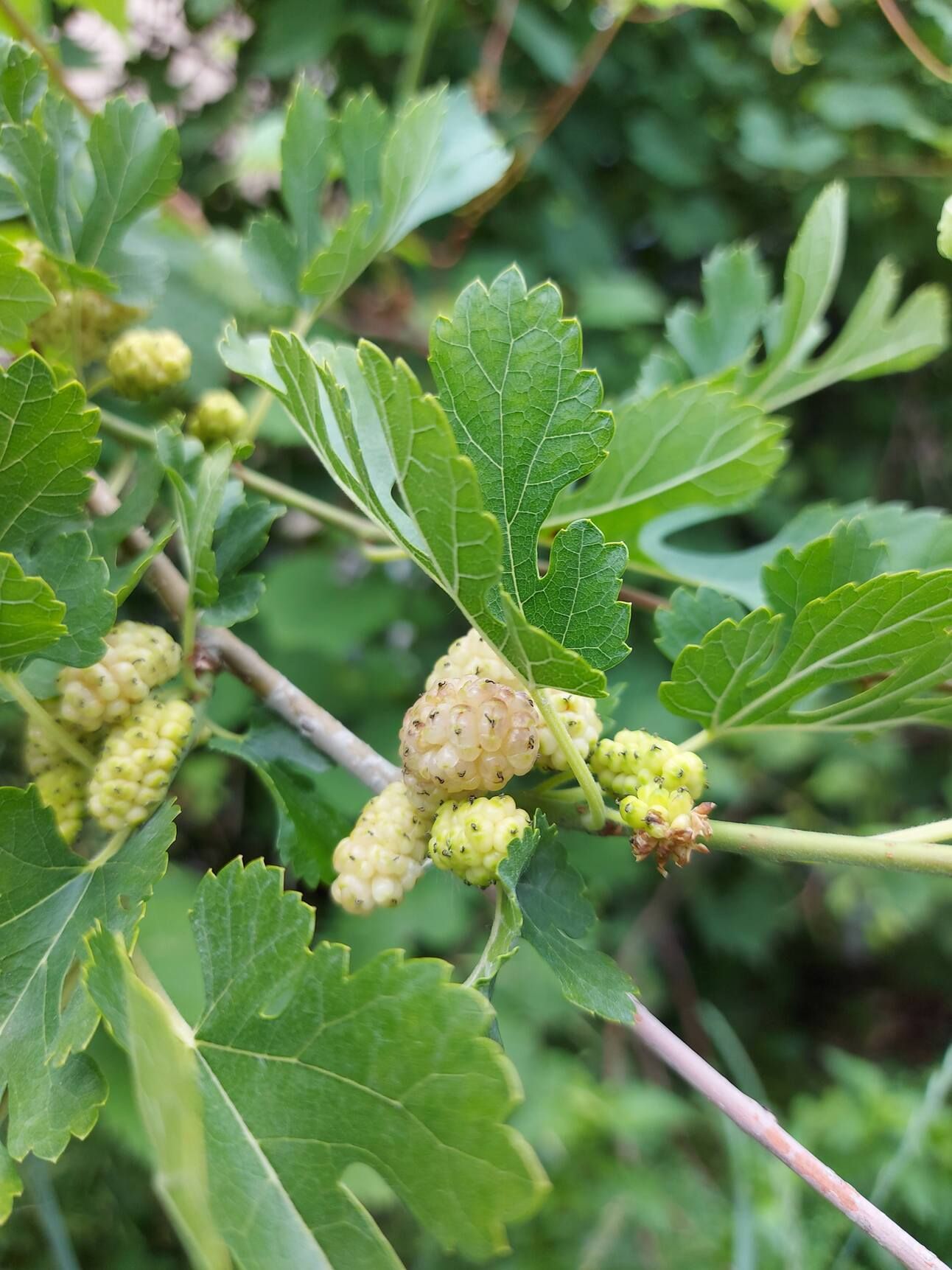 White mulberry starting to ripen